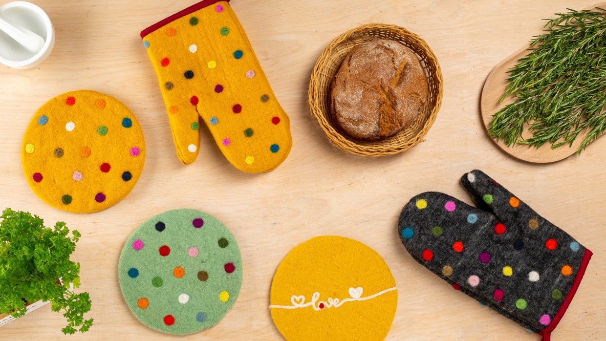 Filzen ist wohl die älteste Form der Textilherstellung, aber so aktuell wie eh und je. Mit handwerklichem Geschick und kreativen Ideen entstehen immer wieder neue Produkte für den täglichen Gebrauch zu Hause. Ob Sitzkissen, Untersetzer oder auch Teppiche – alle Produkte sind in vielen Farben und Formen erhältlich.