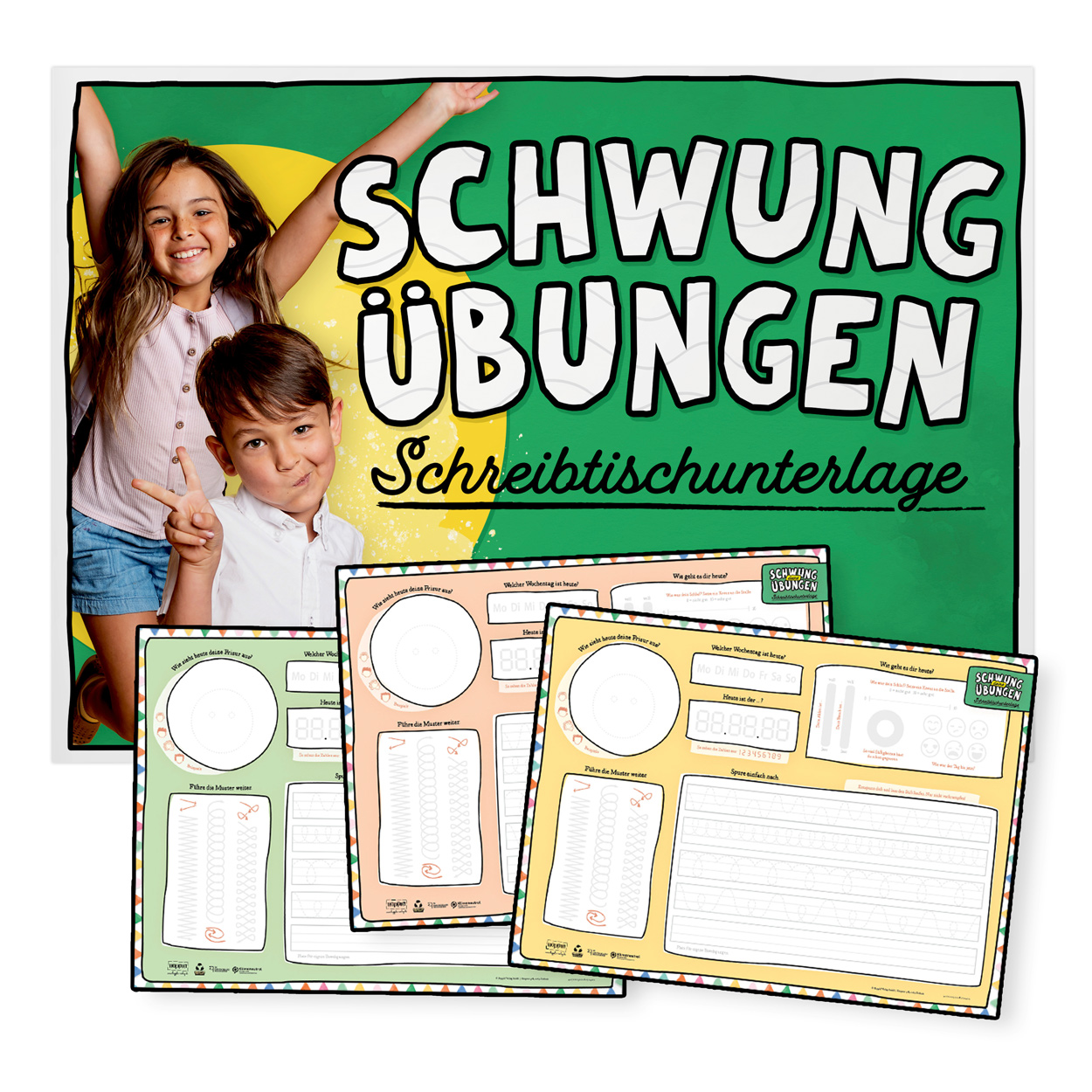 Die farbenfrohe Schwungübung-Schreibtischunterlage fördert spielerisch die Feinmotorik und unterstützt die Stifthaltung durch kindgerechte Schwungübungen. Ideal zur Vorbereitung auf die Schule. Die Unterlage ist in Rot, Grün und Gelb erhältlich.